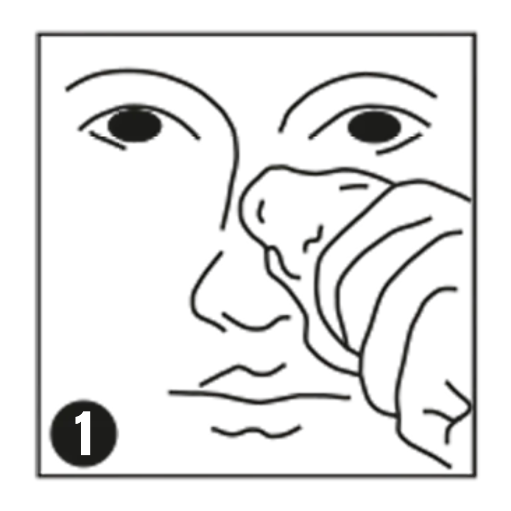 Drücke das Pflaster mit den Fingern sanft auf die Nase und streiche es von der Mitte nach außen glatt. Halte es für ca. 20 Sekunden fest, damit es gut haftet.
